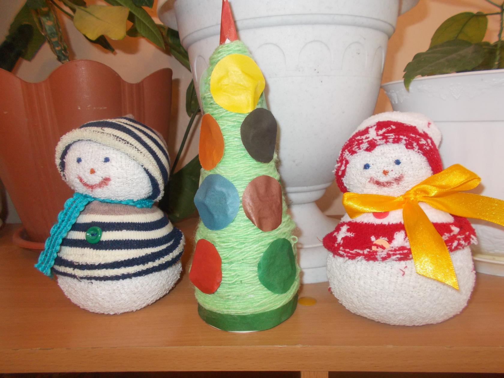 Поделка "Снеговички у ёлки"